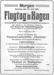 fand am 23. Juni 1912 der erste vom Hagener Verkehrsverein organisierte "Flugtag" statt.[2] Über