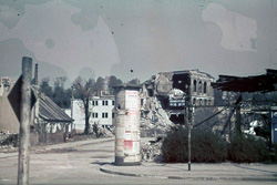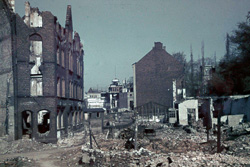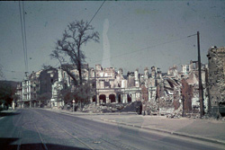Südwestfale, an der Schwanenstrasse. Im Vordergrund zerbombte