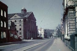 Postamt mit Blick in Richtung Marktbrücke. Links die Ruine war